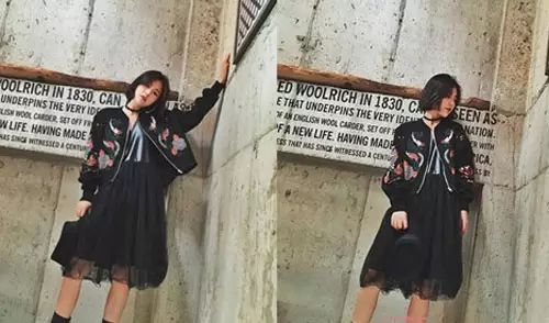 帅气的夹克,内搭一件吊带连衣裙,不仅不会让胸大的MM看起来上身臃肿,反而在视觉上显瘦,而裙子是宽松的所以更加不会显错,穿上黑色短靴,有没有超酷的!