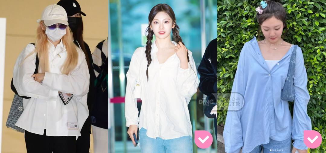 ▲这3件上衣都有一定修饰效果,相对来说,右边2件宽领口比左边的窄领口要更好。