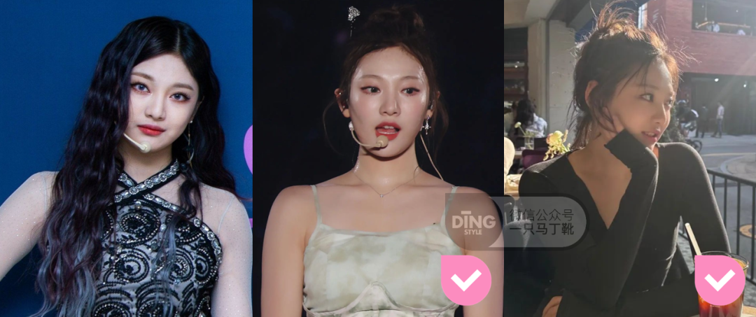 再加上她的脖子不算长,如果造型没发挥好,就显得肩颈有点局促,上半身给人一种壮壮的感觉。