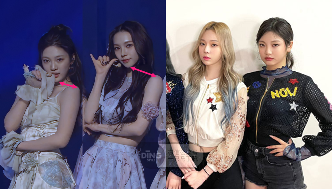这种圆身、皮肉包裹好的特点是天生的,就算再怎么瘦,胳膊也达不到左边张元英这种纤细清晰的骨感。