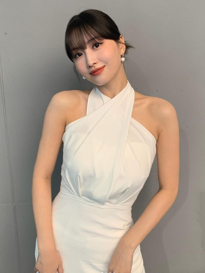 Momo 是女团中比较少见的沙漏身材,合照中可以看出她骨架是比较足的,肩膀挺拔平直,胯的宽度也和腰形成了明显的落差。