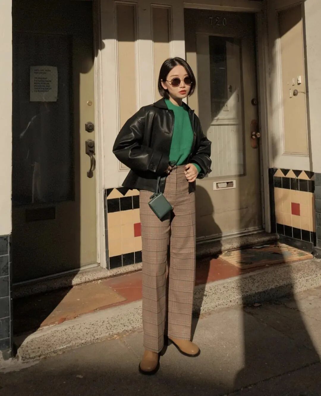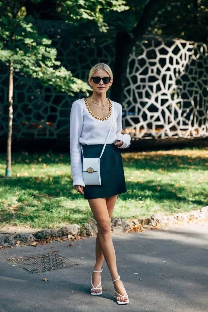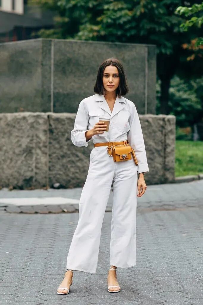 腰带或腰包在强调腰线的同时也丰富了单调的穿搭。休闲约会都可以这样搭配。 特别是有些无法判断腰线的单品,巧用包包打造腰线,舒适又高级,不单调~(小个子选择包包时,建议选小不选大哦,避免造成拖沓、压个子的现象) 如果是挎包注意肩带不要过长,刚好落至最细的腰线位置,将视觉重心上移,帮助你重新分割身材比例。