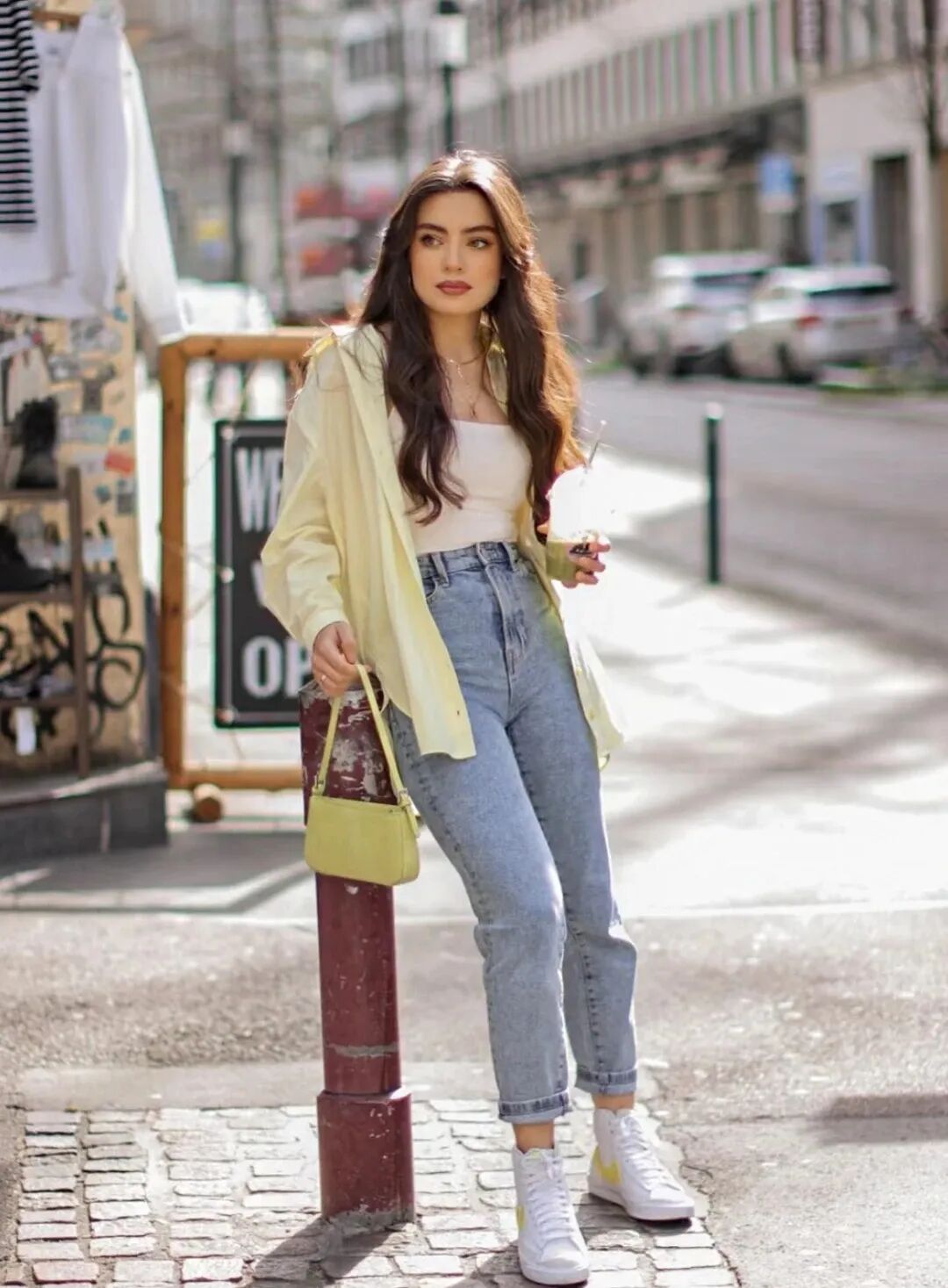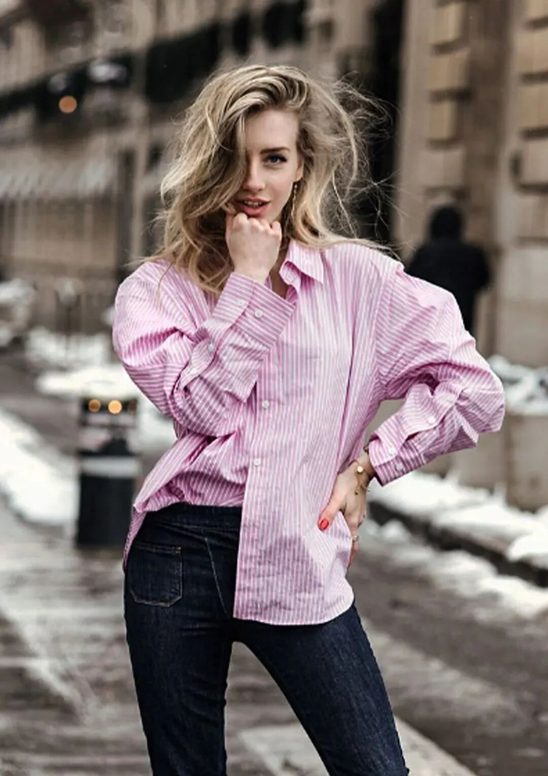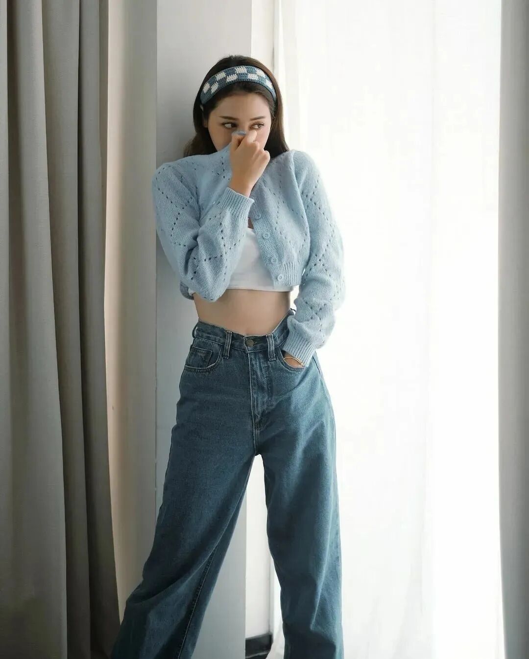 高腰线是显高显瘦的关键。选择高腰的裤子、裙子或者腰带,都可以拉长下半身的比例,此外,把上衣塞进下装,或者在腰间打结,都是常用的心机方法,进一步强调高腰线,使身材更加修长。