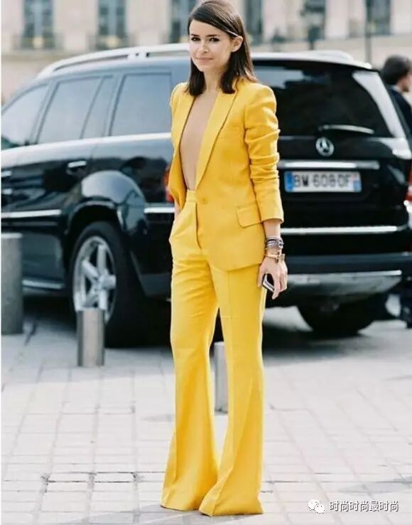 ▲另外一种就是裤子+鞋子顺色。长度到小腿肚以下的阔腿裤,搭配同色高跟鞋,不显矮反而显的比例修长,谁穿谁知道。