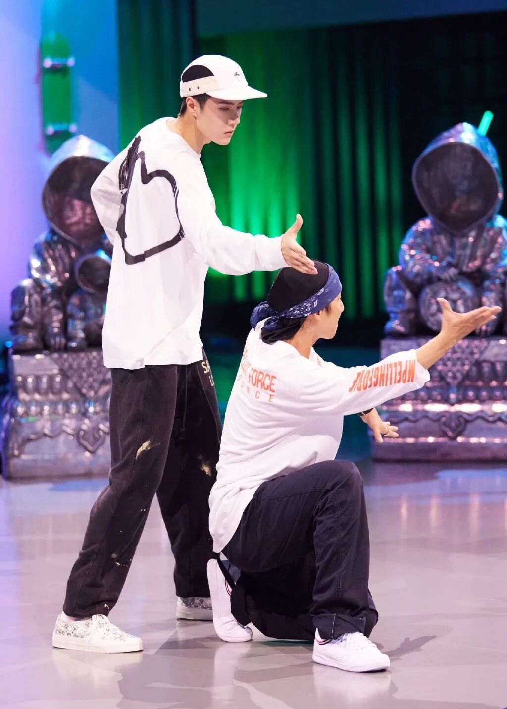 这两年貌似流行短卫衣,所以各家“各有所短”,短款之前先插播长款,比如王一博在《这就是街舞4》里这几件,各式各样的卫衣是他最经常穿的。