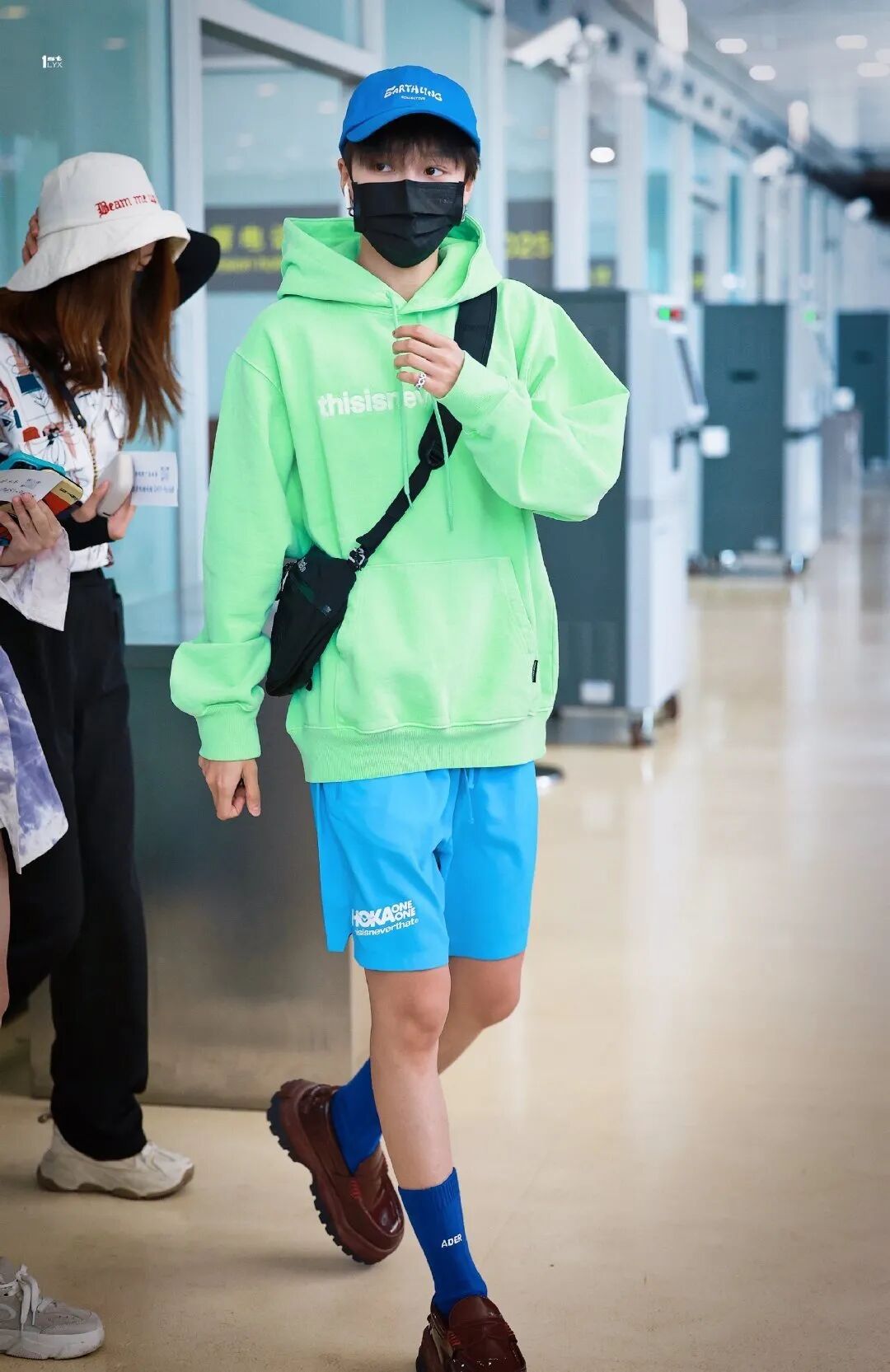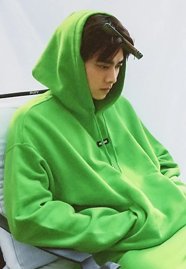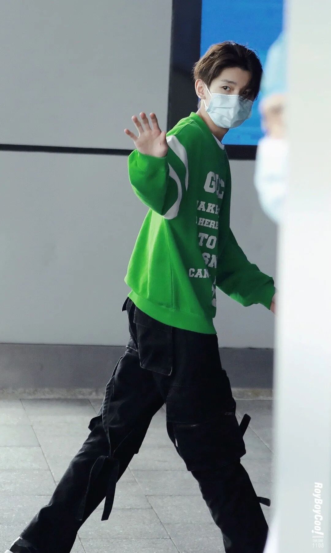 在搭配上,之前大家都很喜欢使用的万金油黑色固然是不会出错的。王源就用绿色复古印花卫衣搭配黑色多口袋工装裤,元气满满,学院风和机能风的结合也蛮有趣蛮个性的。