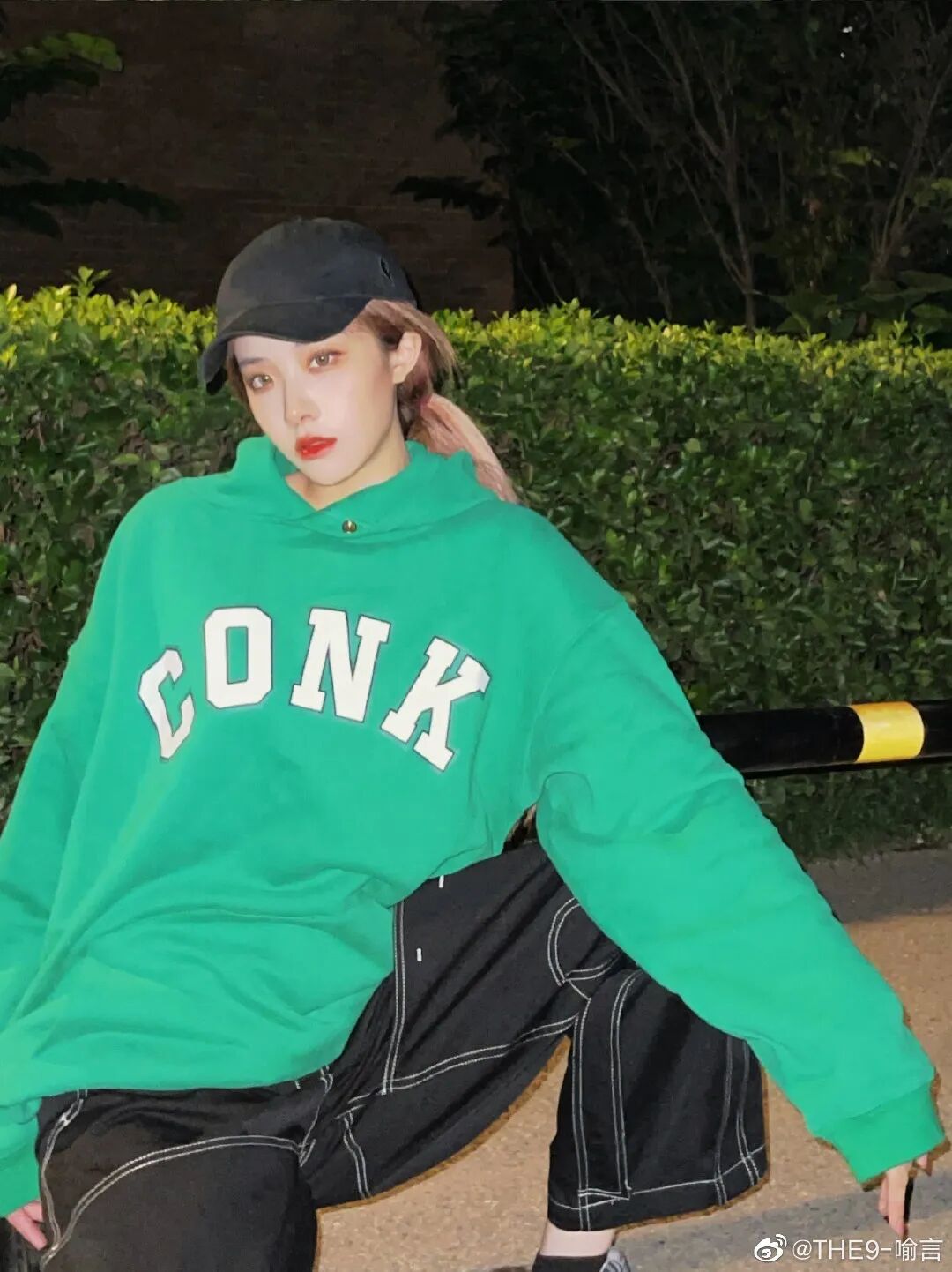 刘雨昕和喻言都在不同场合选择了绿色的卫衣搭配棒球帽,彰显个性活力。刘雨昕还大胆采用荧光色的撞色,蓝色休闲中裤和棒球帽颜色相呼应,很是亮眼。