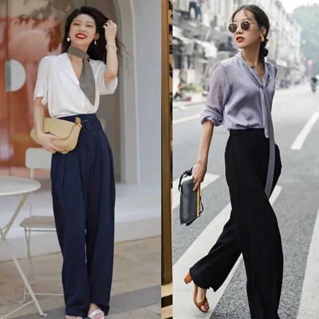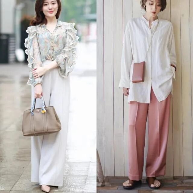 比如:褶皱衬衫+阔腿裤