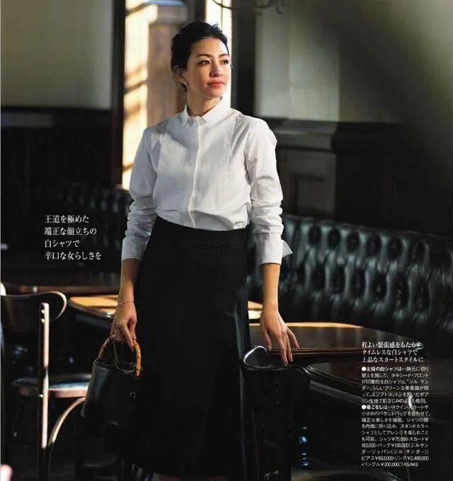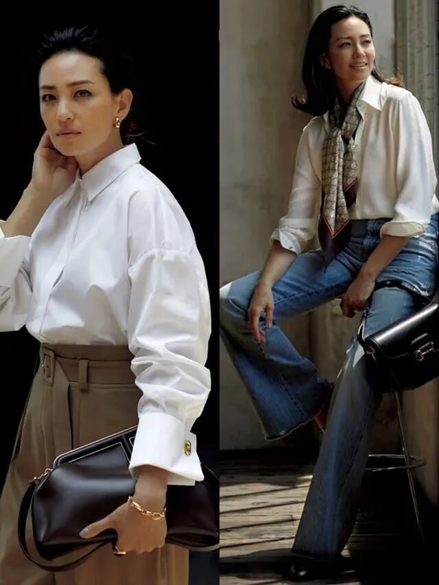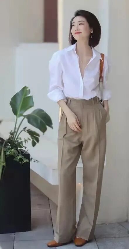中年女性最常搭配的可能是白色衬衫,白色衬衫最能直观地体现出一个人的气质,如果材质选择的不高级,根本没有办法呈现出一种高贵与气质感。