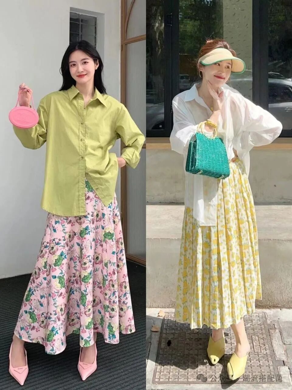 碎花裙是一件休闲感很强的单品,而衬衫给人的感觉往往是严谨而呆板的,把这两种风格迥异的单品放在一起天然就有碰撞感,很容易擦出时尚的火花。