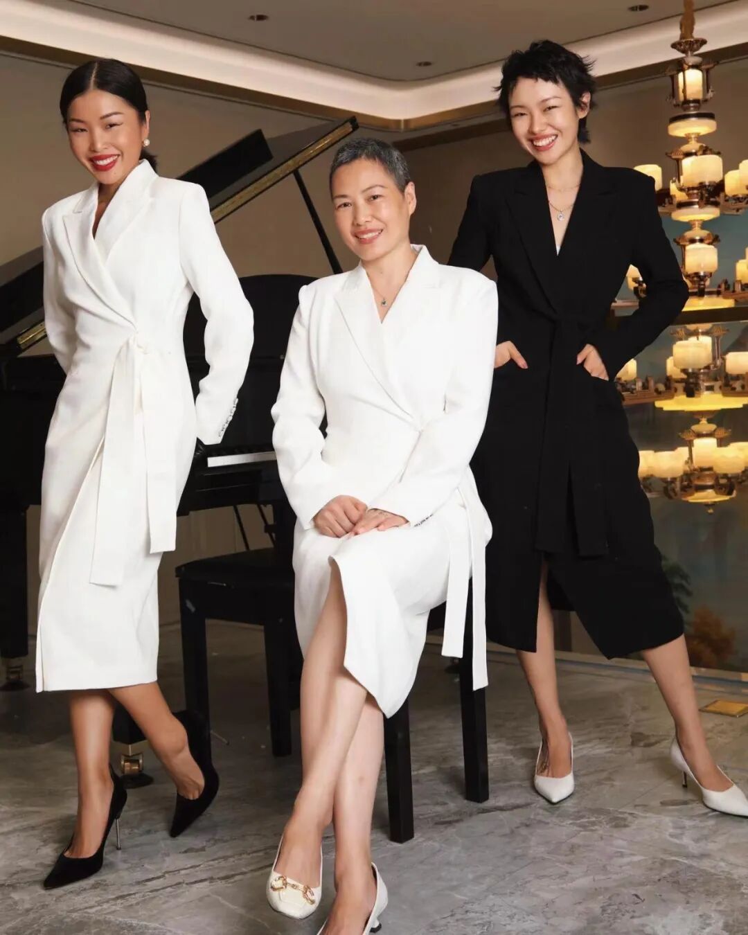 小个子也不用担心,请出品牌创始人 Mei,1.56米的身高也能完美 Hold 住,搭配高跟鞋优雅又高贵。