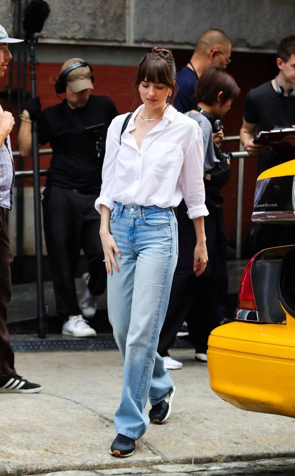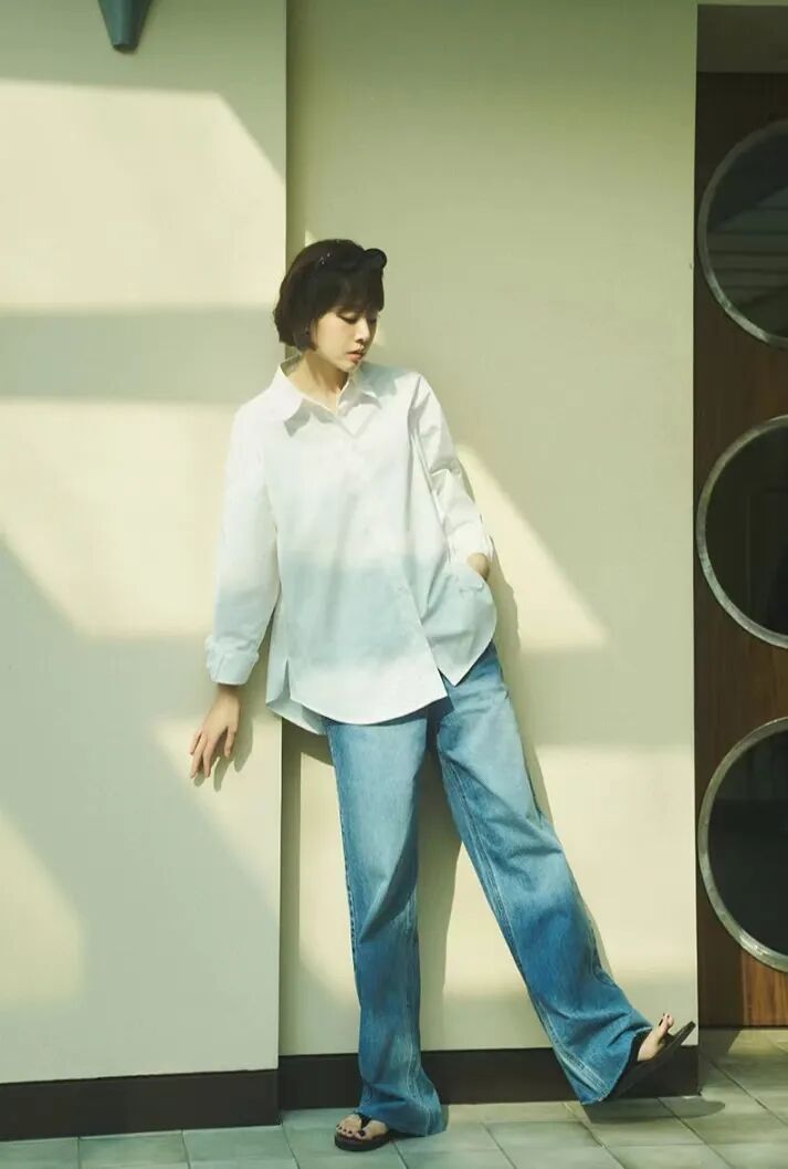 达妹最近的街拍,白衬衫搭配蓝色牛仔裤,简简单单就很美。▼