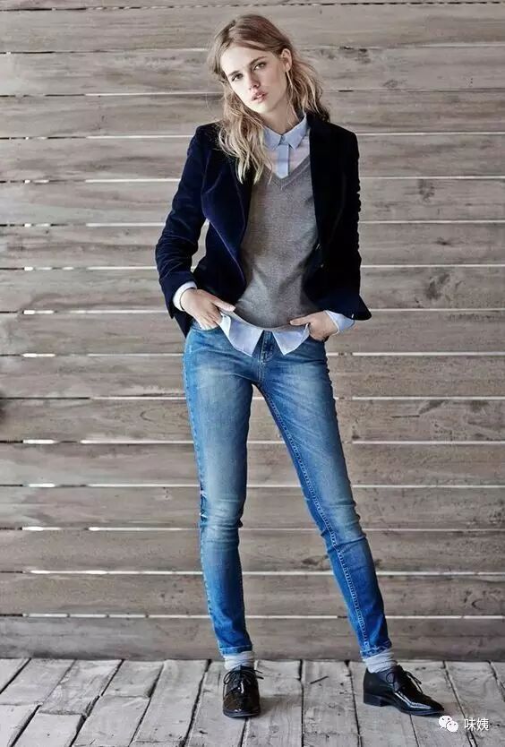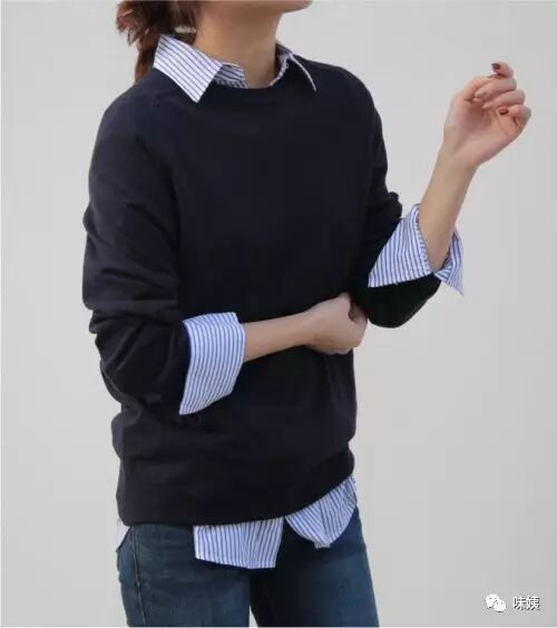 一修身休闲叠穿法说到休闲,不能太过张弛,又不过于拘谨。内搭一般是有领的衬衫,而且毛衣和衬衫的宽度恰到好处,看起来一本正经,又不过与死板。适合所有穿衣类型的女生。