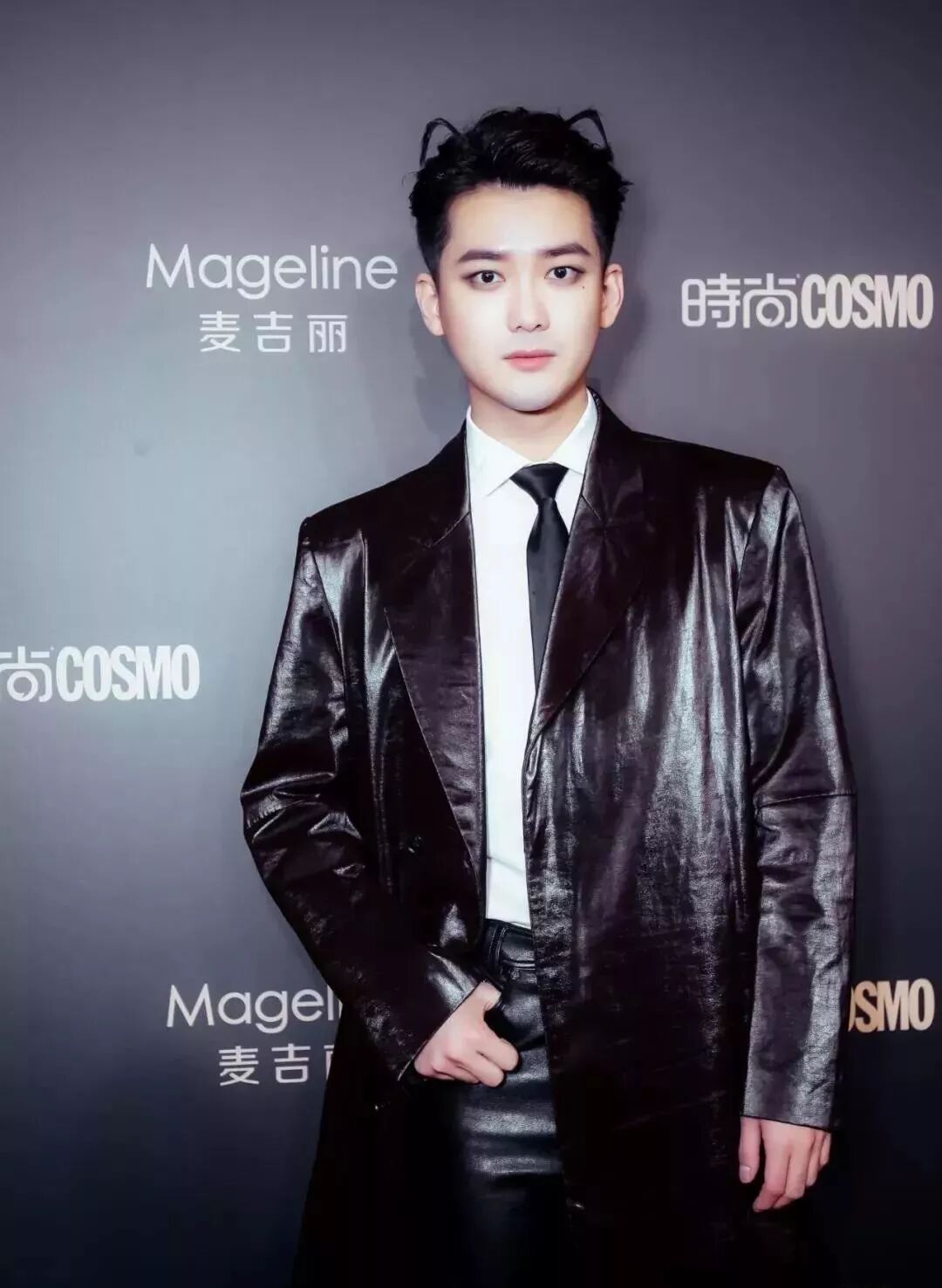 从常规来说,皮革面料是打造酷帅的首选,坚挺性质很能彰显男性的魅力。顶着烟熏妆的熊梓淇真是娘到极致,看得小邻想洗眼。但不得不承认,这件皮革长风衣也是帅气满分。