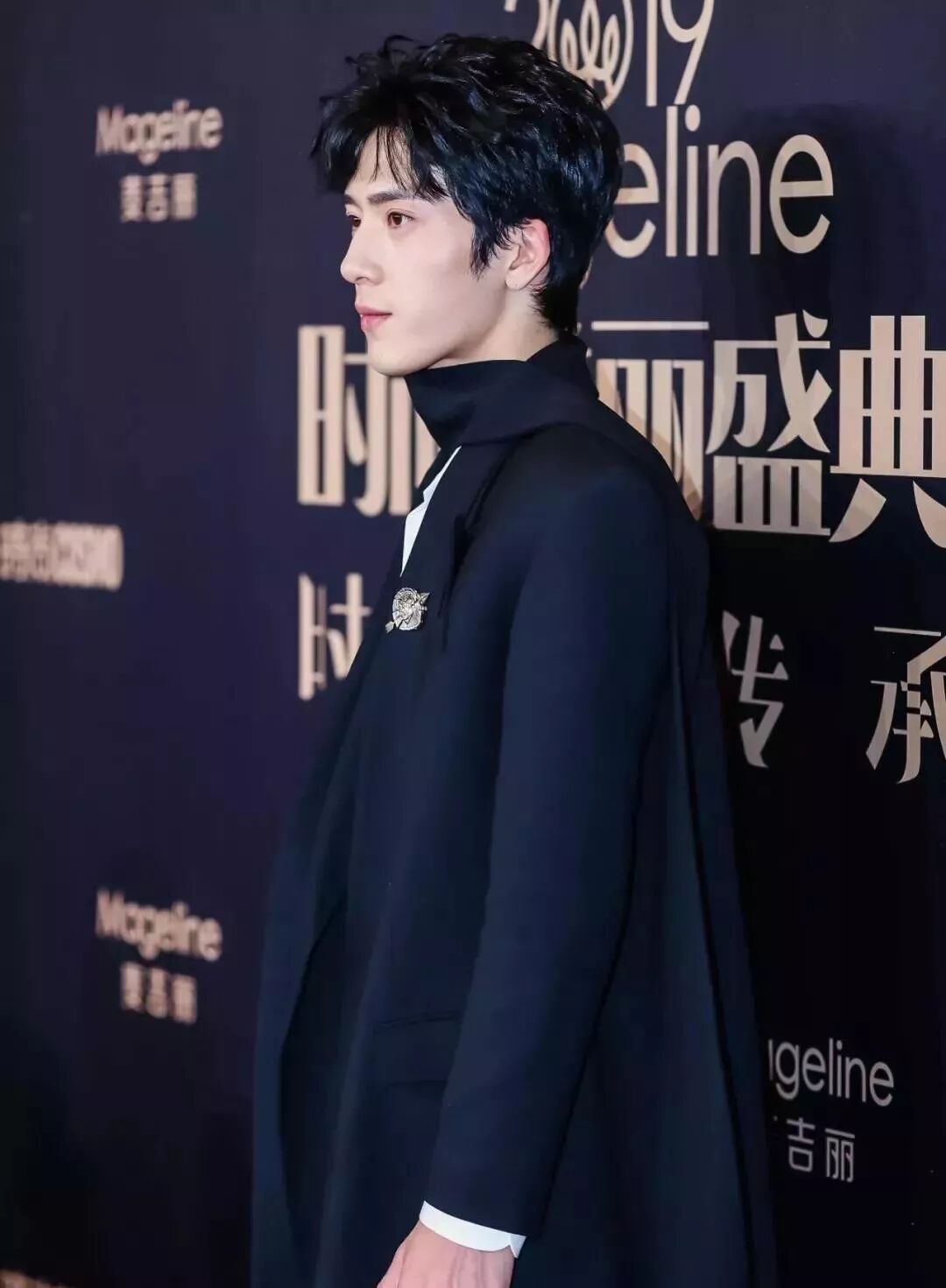 素有“穿搭教科书”之称的小井哥哥依旧发挥稳定,宽松黑西服休闲帅气,点缀一个弓箭徽标样式的胸针,更显英伦风范。