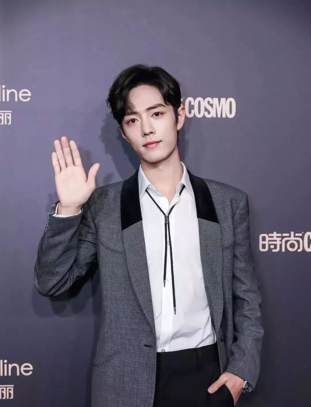 肖战的灰色垫肩西装完美遮盖了他的窄肩,挂脖鞋绳链更将视觉焦点移回了俊朗阳光的脸庞。这心思,真是666~