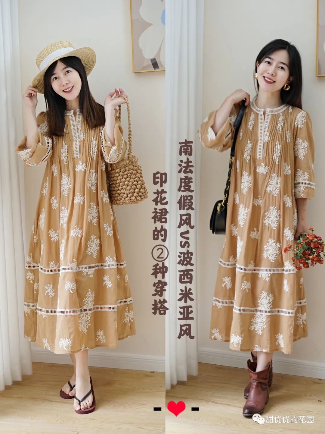 一条绝美印花裙的②种穿搭/南法风&波西米亚风