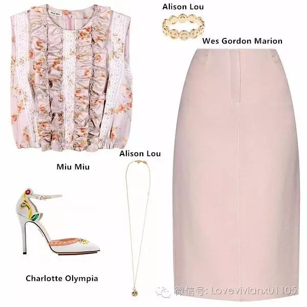 而搭配上可以是正式的粉色One piece,也可以是粉色蕾丝花边短上衣,搭配粉色铅笔裙。即有工作时的小干练,轻粉色又有女性化的柔美。
