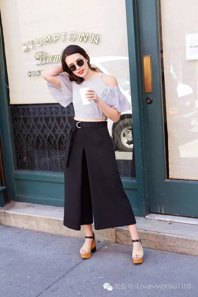 搭配上,牛仔裤和今夏最流行的轻露肩短上衣更配哦。