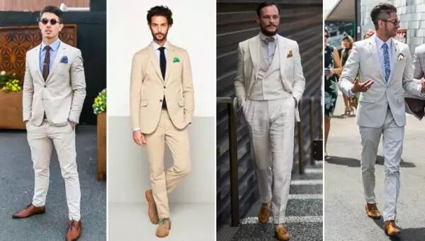 浅棕色鞋跟米白色的西装最搭!这样的搭配不但很适合夏天也意外的很适合正式场合穿着。