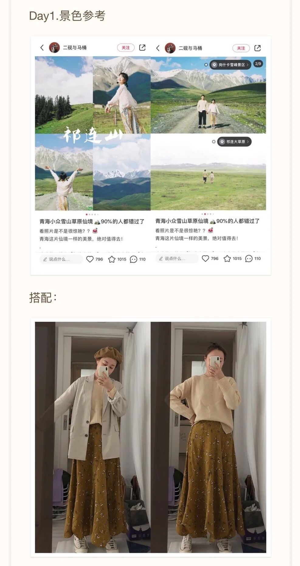 ★告诉大家一个偷懒的方法,可以在某书上面搜景点的关键词,根据别人的漂亮照片来作为自己搭配的配色参考。