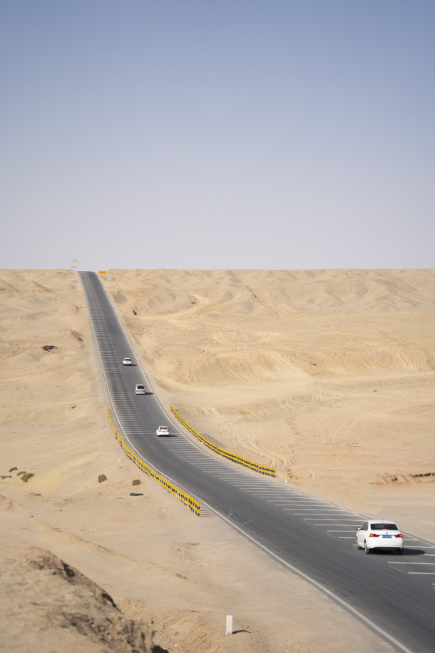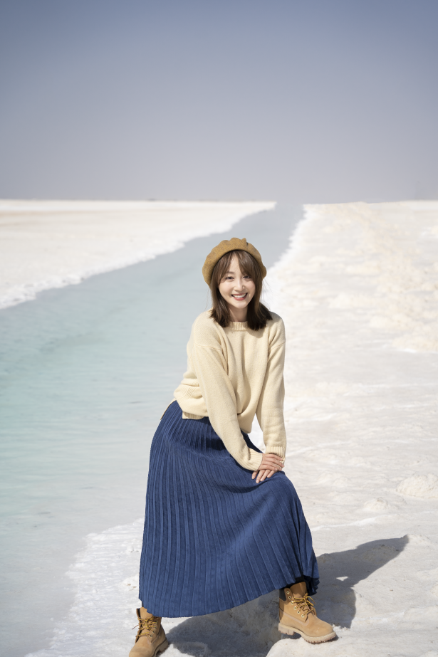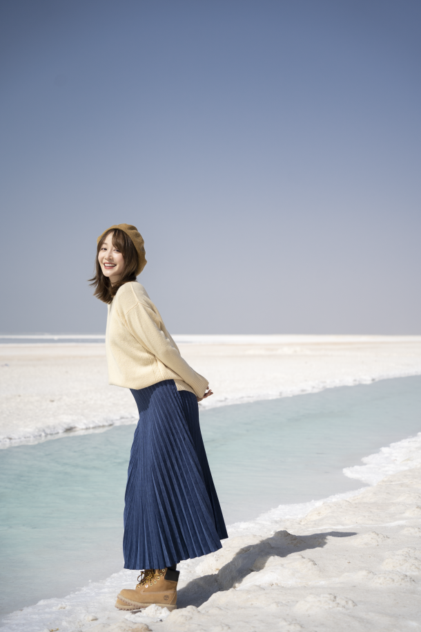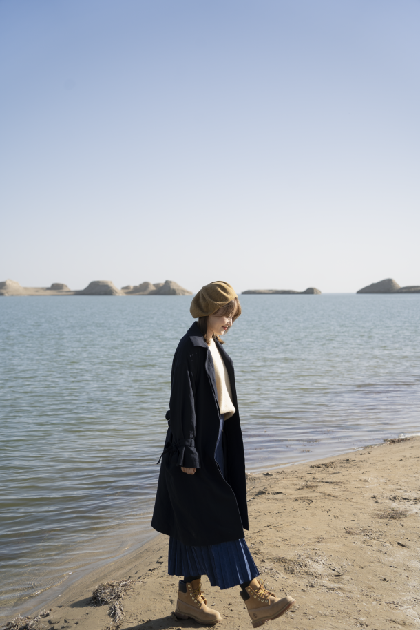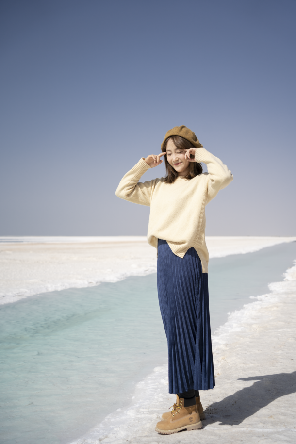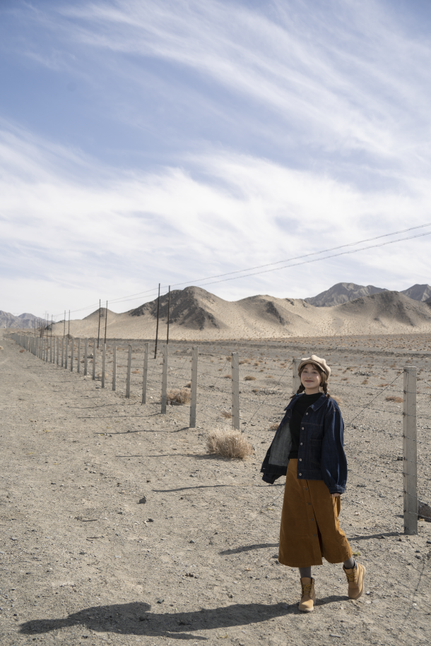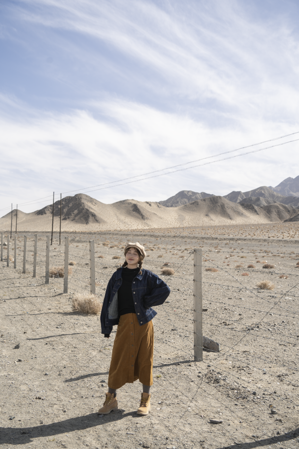 这次旅行我就带了浅蓝色的头绳,宝蓝色的裙子,还有深蓝色的风衣,我当时穿了这一身去了有名的66号公路,还有两个漂亮的盐湖,整体look和大环境非常搭,出片成功率极高。