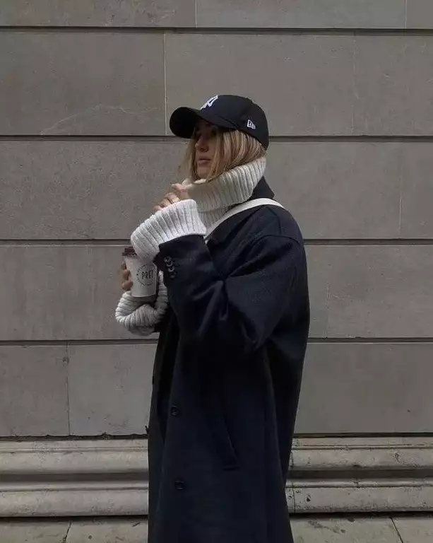 想要把大衣穿得时尚,关键在于巧妙搭配,“大衣+高领毛衣”的组合无疑是高级感满满。这种搭配属于叠穿,重点在于凸显层次感。毛衣在脖颈处着重强调,既能呵护脖颈肌肤,又能勾勒出线条感,再加上与大衣之间的层次感,更能衬托出高贵优雅的气质,是一种既保暖又时髦的穿搭方式。
