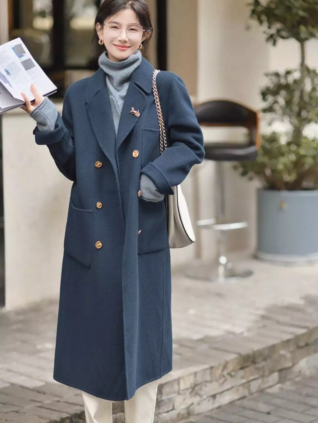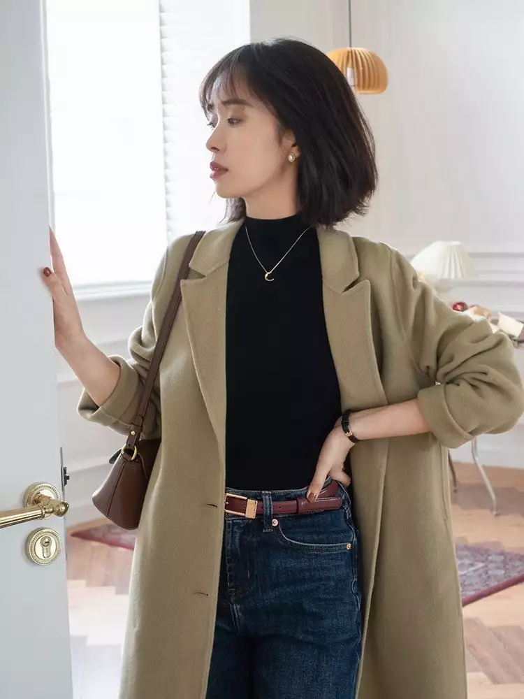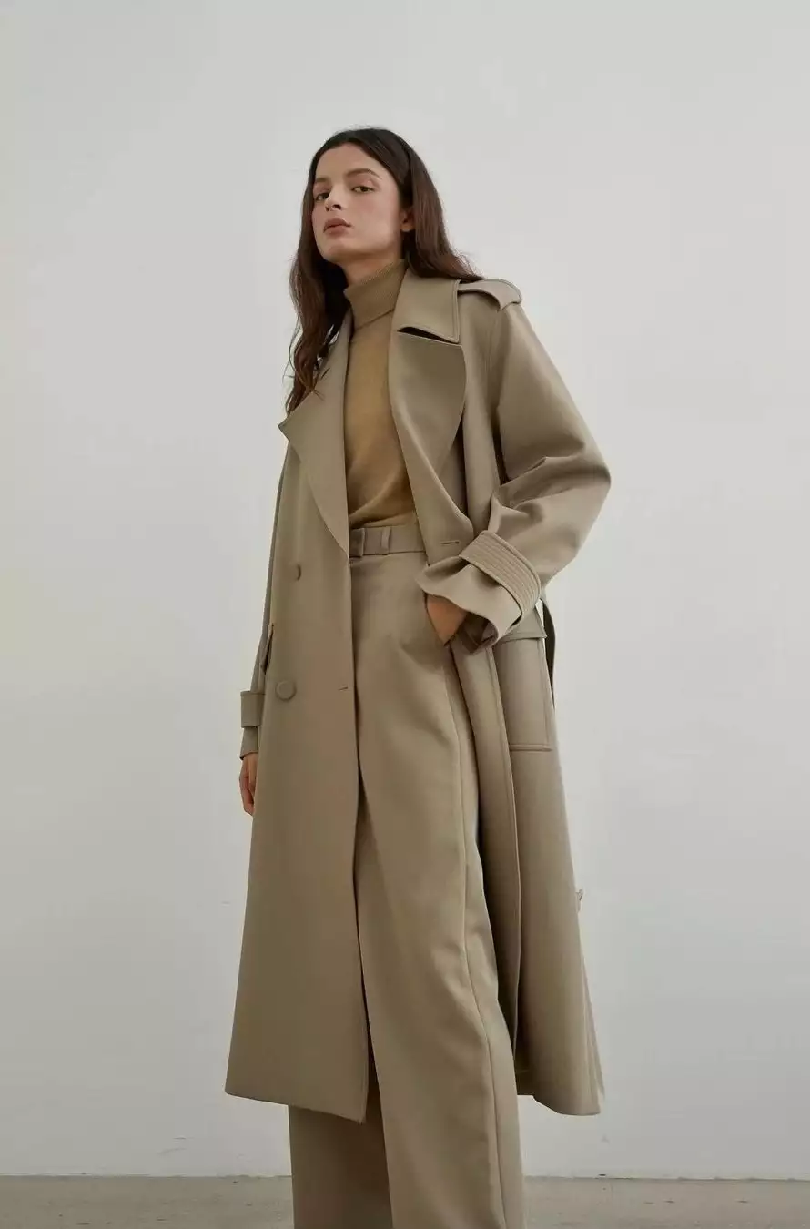 大衣也可以延续简洁的风格。H版型的大衣线条清晰,相较于O型大衣更为利落,能进一步彰显干练气息,避免拖沓感。而且它还能竖向修饰身材线条,帮助显瘦。