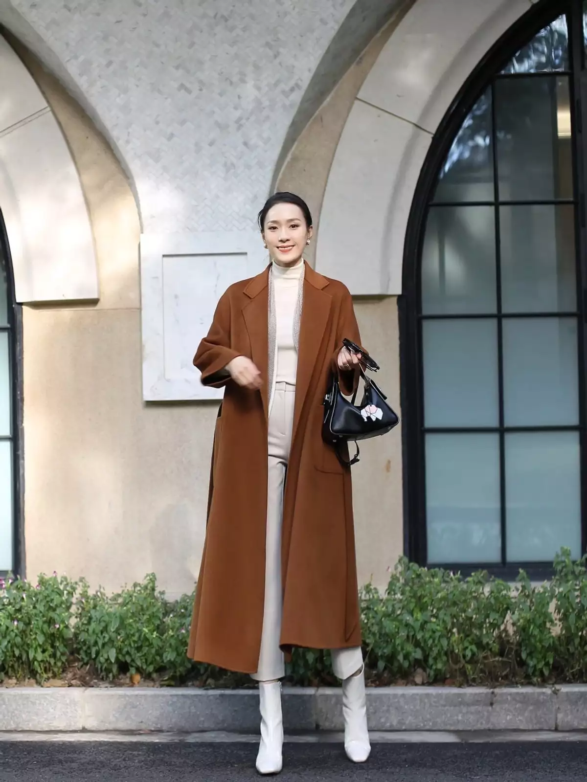 二、穿搭博主是如何搭配大衣+高领毛衣的