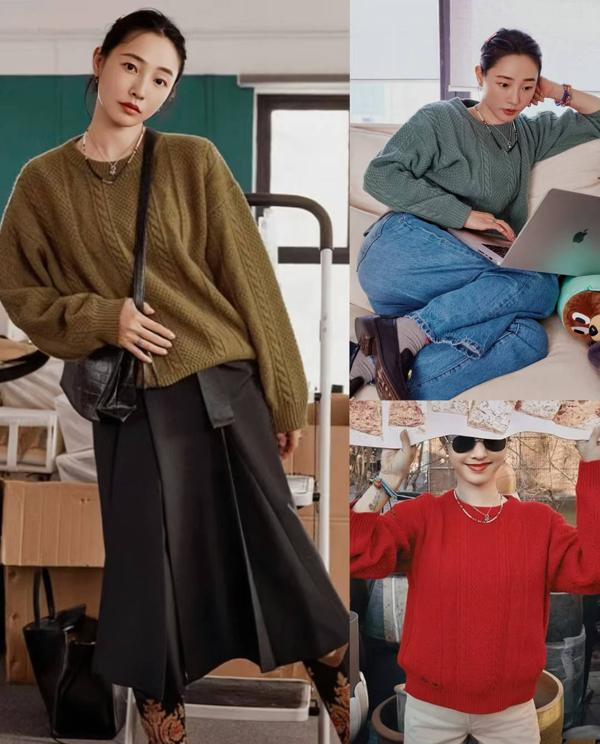 在她最近的直播中,白百何就展示了一件经典不过时的绞花毛衣。这件全羊毛材质的毛衣,质感满分,越素越高级!而且她用它搭配出了多种造型,轻松驾驭不同风格,简直就是“百搭神器”!