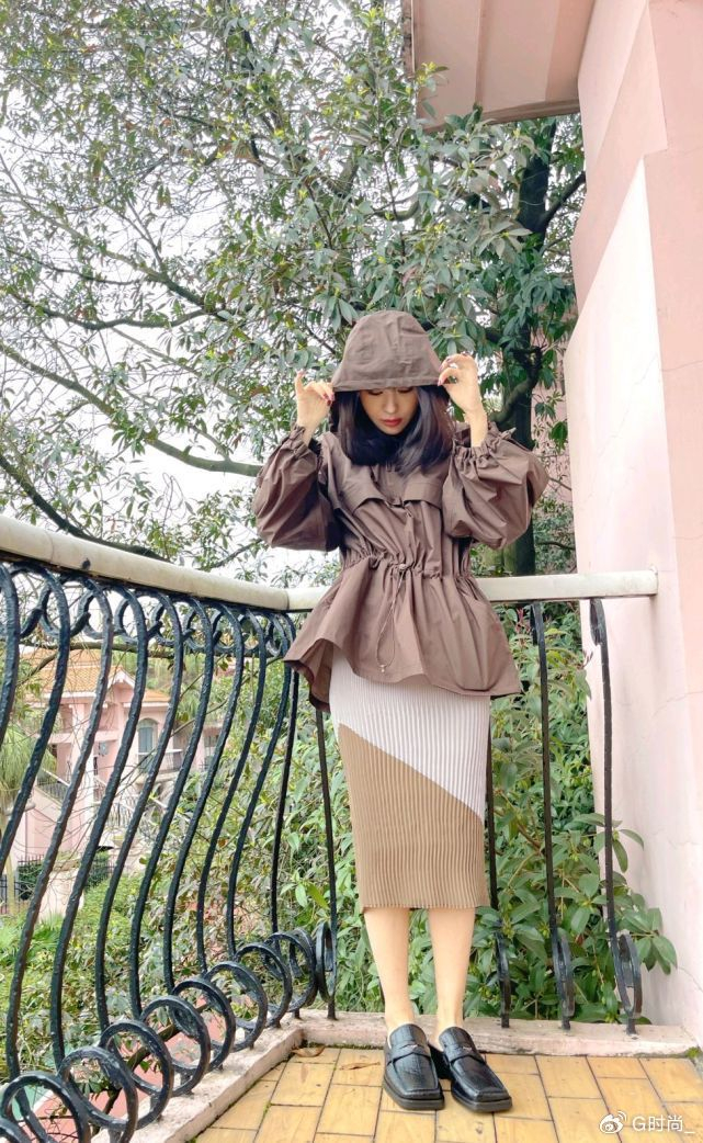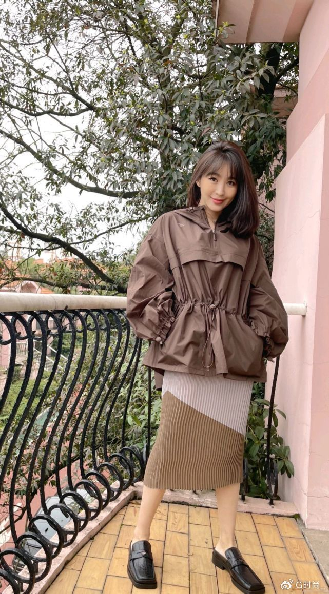 李菲儿的穿搭真好看,身穿咖啡色外套配百褶裙,低调中透露着高级