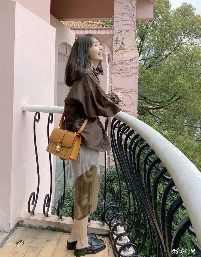 李菲儿的这身穿搭还有一点很值得我们学习,她选择了同色系穿搭,上衣是咖啡色,所搭配的半身裙也融入了咖啡色,起到了上下相呼应的作用,整体穿搭造型在配色上不会有突兀感,看上去高级又时髦。