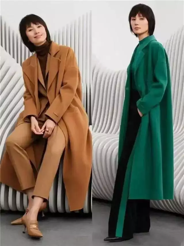大家看下面这位女明星袁泉,她的颜值够高了吧?身材也很好,但是穿了一件绿色的大衣外套,内搭绿色的毛衣,结合上黑色的阔腿裤,脚踩一双尖头的单鞋,看起来非常的洋气,如果这件大衣外套的质感不够好的情况下是穿不出这样的气场的,同时也很考验人的颜值。