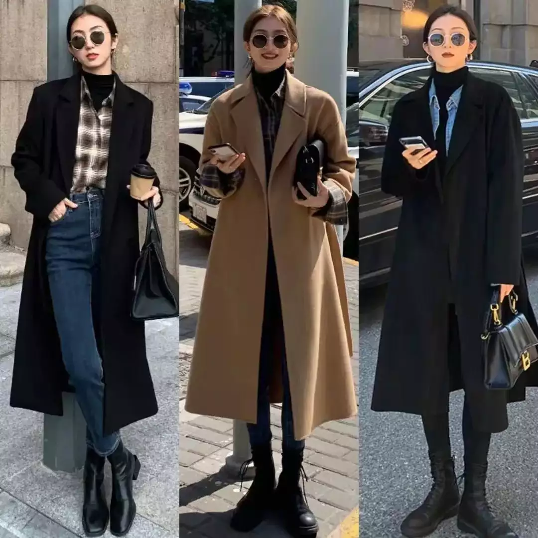 同时选择的衣服颜色不同,包括裤子的版型,甚至是鞋子不同,穿出来的效果也是天壤之别,例如下面这三位素人博主的穿衣造型,选择了最为基础的黑灰色大衣外套搭配上直筒裤,脚踩一双帆布鞋,这样的穿衣造型就会比较休闲一点。