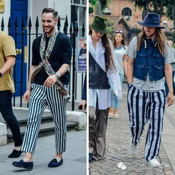 还有像下面这种竖条纹的裤子大家还是看看就好,真心不好穿,当然如果你觉得自己搭配功力十级还能忍受别人的注目礼的话。