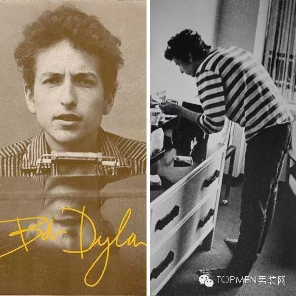 而后在音乐界有巨大影响的鲍勃·迪伦也常穿,就连专辑封面造型都是条纹衬衫。