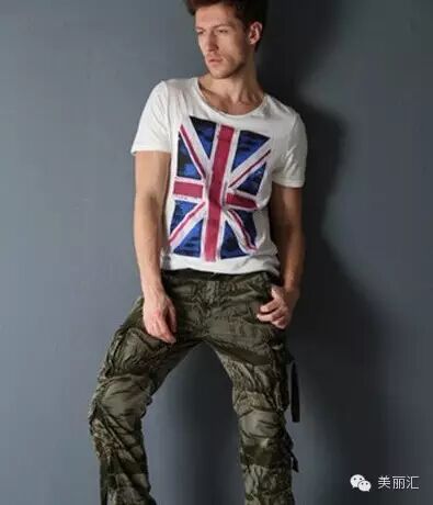 英国国旗作为此款潮男服饰中最抢眼的时尚元素,平铺在白色圆领短袖上,干净利落的设计,是模特对接下来的穿搭更加得心应手,而他的选择是与迷彩裤子有这样一样时尚效果的宽松长款,尽显男人的帅气一面。