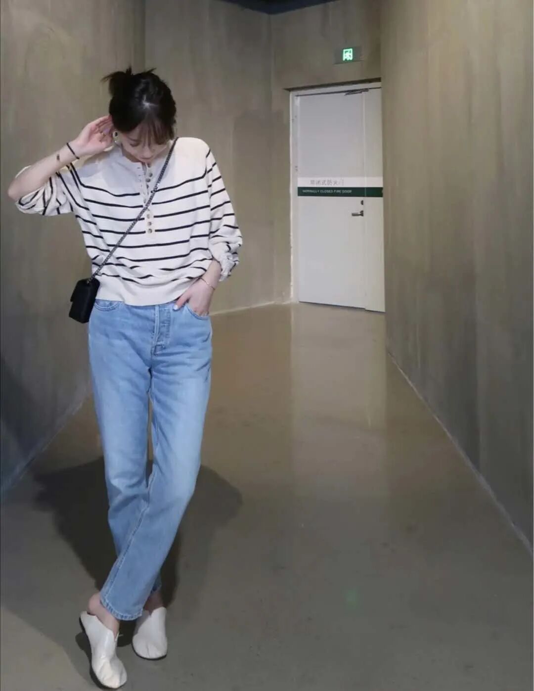 look5 条纹毛衣+蓝色牛仔裤