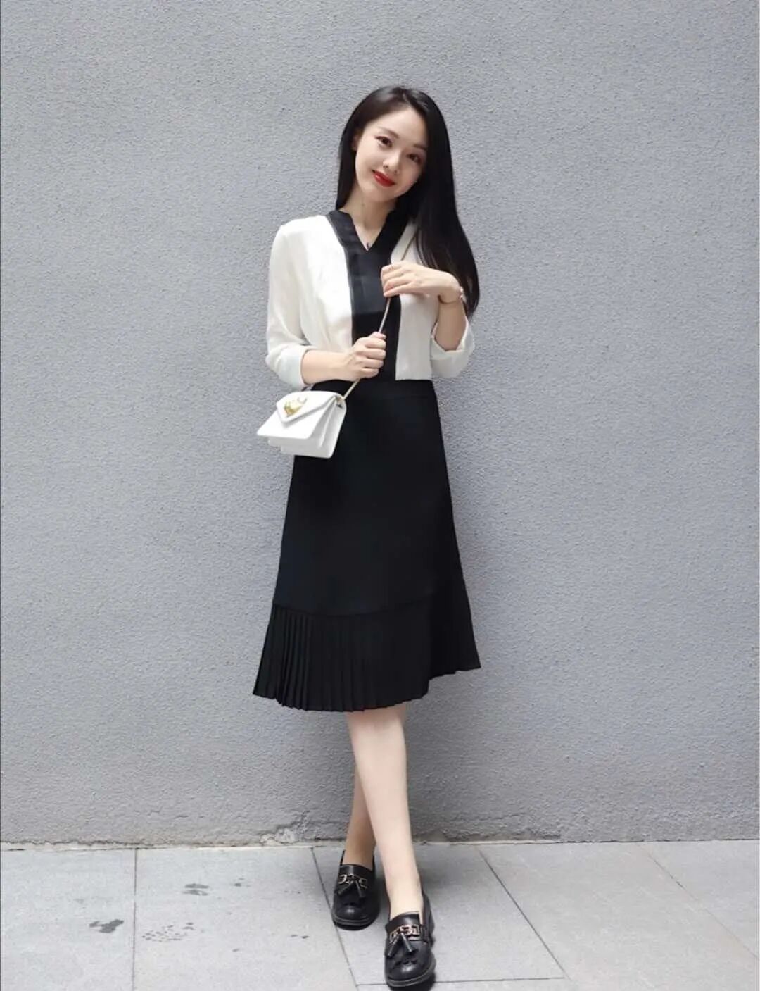 是适合白领的穿搭上班通勤风,黑白搭配总是最经典和不易出错的,并且非常显气质。