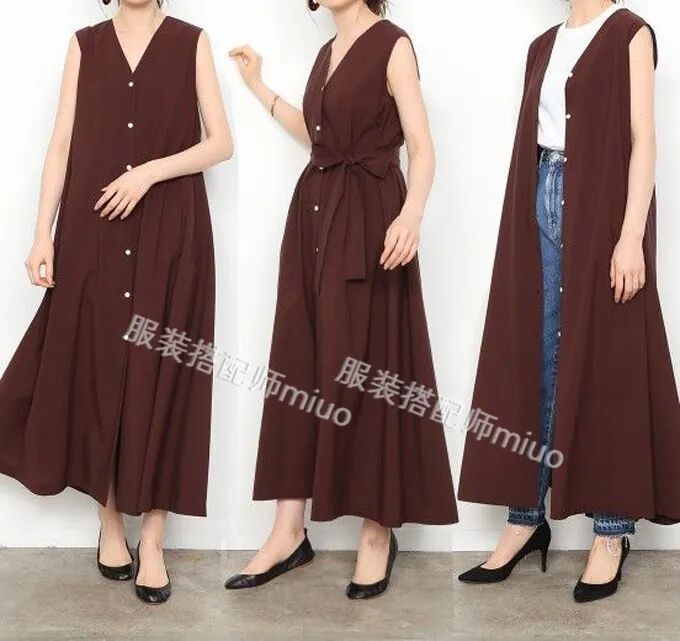 这种时候,你就需要一件款式简单、颜色素雅的套头马甲了!最好是宽松一点的版型,把它套在你的印花连衣裙外面,就能覆盖掉大面积的印花,瞬间低调不少,而且还保留了连衣裙的领口、袖子、裙摆的设计,只要再搭双简洁的鞋子、拎个极简风的包,日常穿也十分得体。