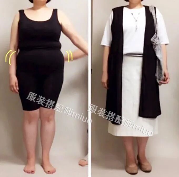 前阵子我还对此写过一篇针对圆润宽胖型的身材,只要套一件这种窄长的马甲,整个人都要显薄两圈,不知道大家还记不记得?
