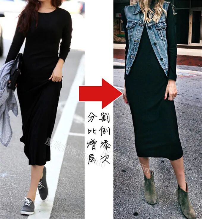 前阵子有一期真人解析,这位题主原图中的黑色短马甲,如果像原图中搭配“上衣+下装”的组合,就会把人分成一截一截的,很奇怪。