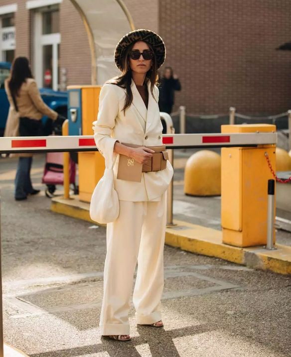 尤其是今年大家都选择同色套装的时候,如果你能够在一个造型中出现颜色深浅不一或者面料相碰撞,那么这些细节往往会给人一种你很会穿的感觉。
