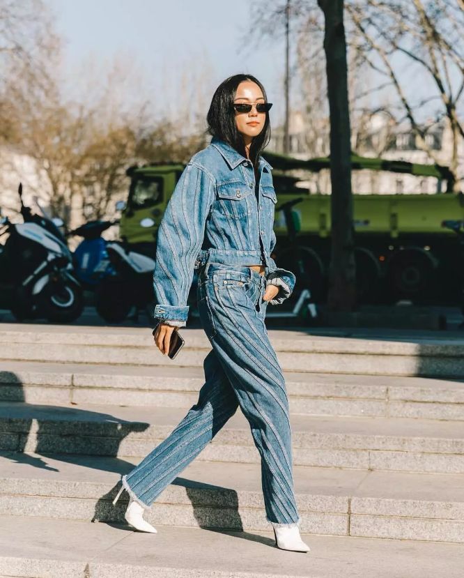 连体裤虽然穿起来感觉好像不是特别方便,但是它的确非常有助于打造完美的身材比例,在显高方面对小个子也非常友好。