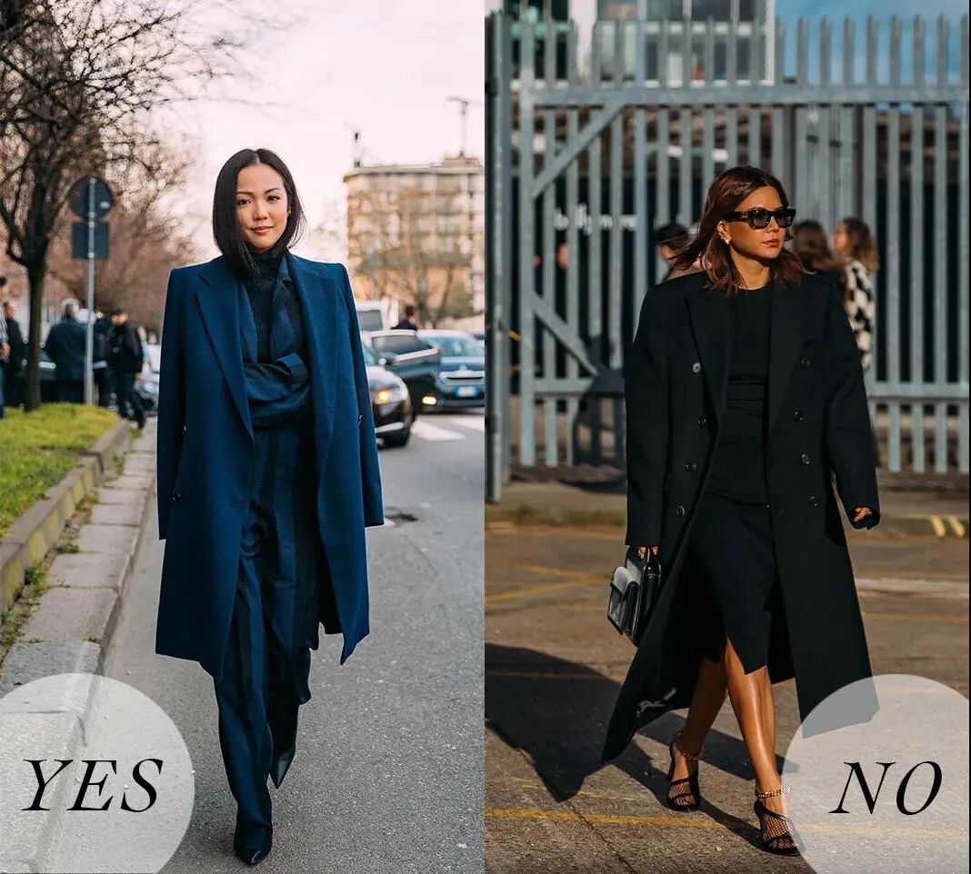 参考下图身材小个千万不要选的款,大衣的穿搭肩线很重要,落肩款的大衣不要选择,会显非常无精神状态,