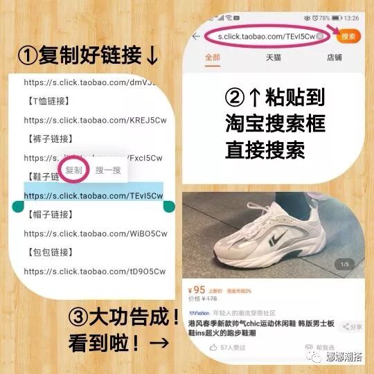 ⭐单独复制每款对应的链接,打开淘宝,黏贴到首页搜索框进行搜索,OK,看到啦!