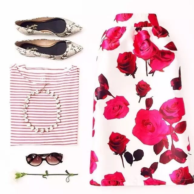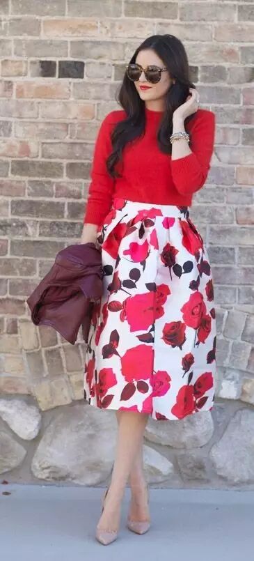 印花的Midi skirt简直就是为情人节而生。