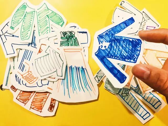 靠着从小玩芭比娃娃的经验,完成了十四天的搭配草图。