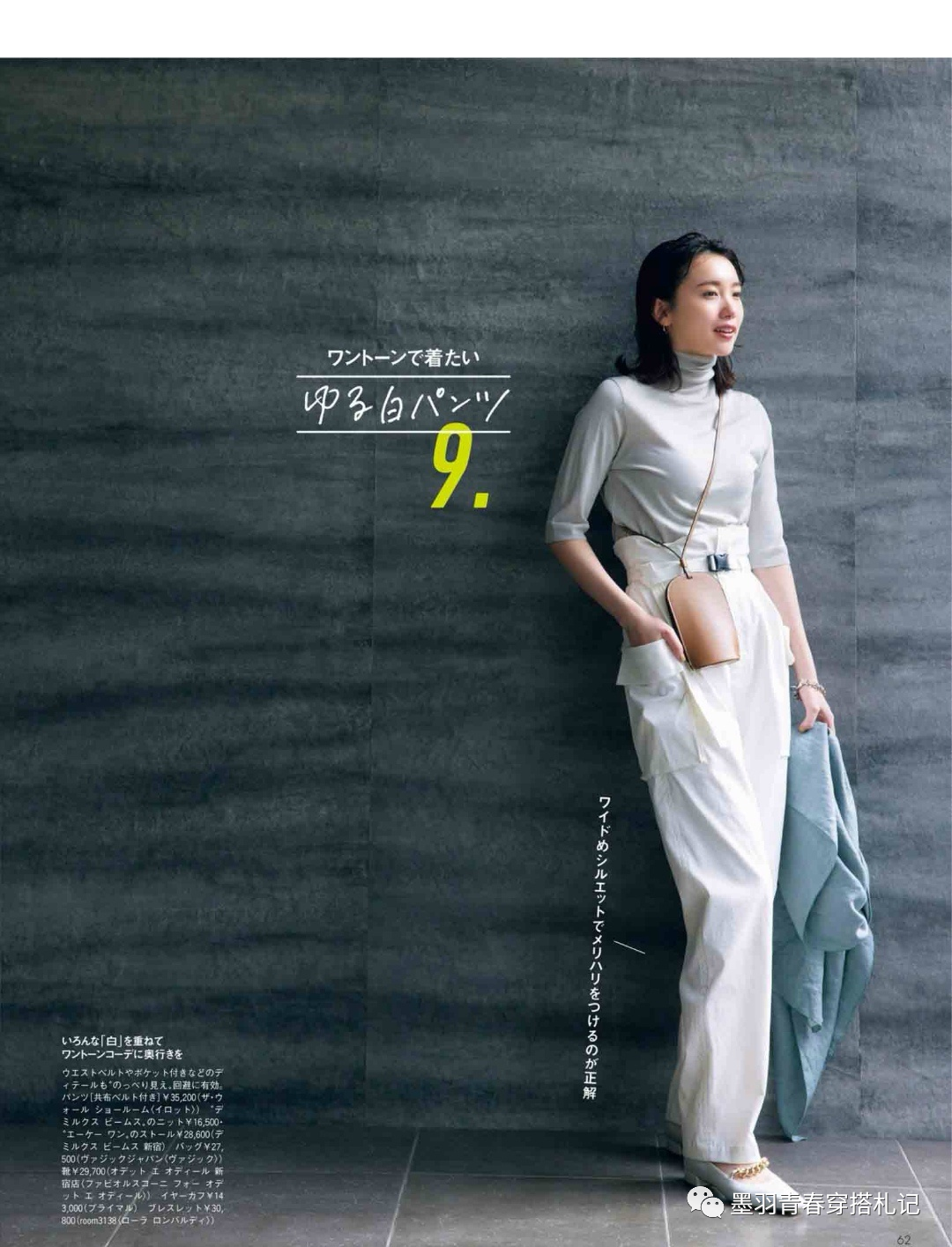 短款的针织短袖配上高收腰的白色工装裤,整体搭配既显温柔又很减龄,工装裤的两侧加入了宽大的口袋设计,可以遮盖住胯宽的问题,再加上腰部利用极细的腰带,露出一部分边角可以起到割裂小蛮腰的作用,显得下半身的比例特别优越。除此之外,这种宽松的工装裤对于腿型没有什么要求,即使是小粗腿也能完美地隐藏。