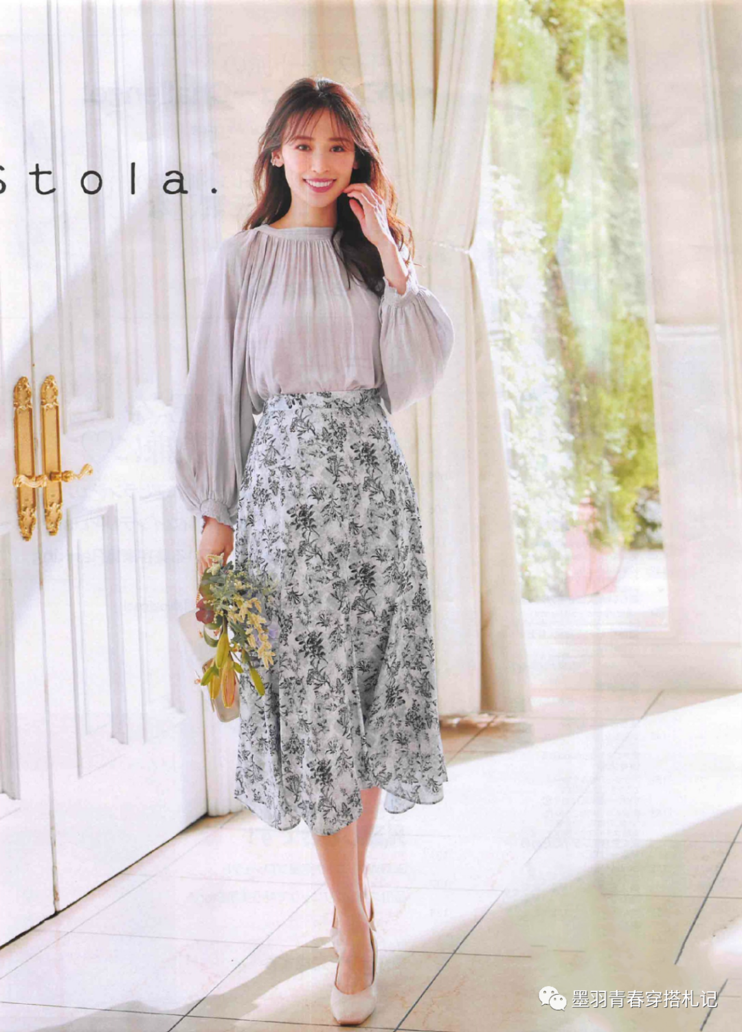 要想看上去身材苗条高挑,凸显腰身是穿衣搭配当中格外值得注意的一个点,这套浅紫色雪纺灯笼衫搭配碎花半裙的造型,优雅又浪漫,显现出的都市女人的高级感。